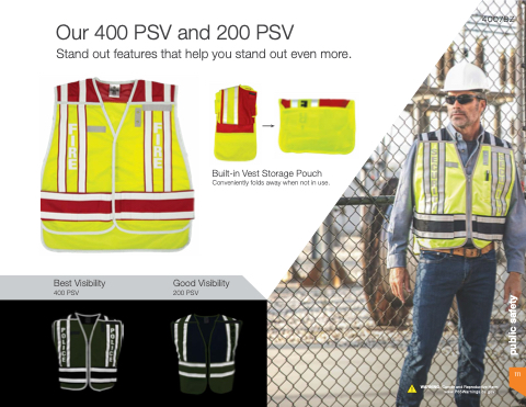 Built-in Vest Storage Pouch Conveniently folds away when not in use Best Visibility 400 PSV Good Visibility 200 PSV 111