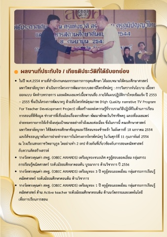 – 2555 ซงเปนโครงการพฒนาคร ดวยสอโทรทศนคณภาพ (High Quality narrative TV Program