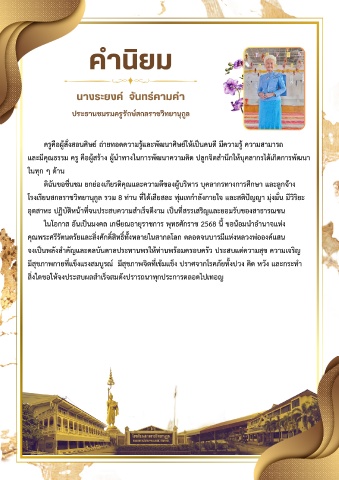 ดฉนขอชนชม ยกยองเกยรตคณและความดของผบรหาร บคลากรทางการศกษา และลกจาง