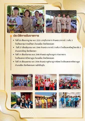 วนท 18 เดอนเมษายน พ.ศ. 2554 ตําแหนง ครชํานาญการพเศษ โรงเรยนสกลราชวิทยานกล