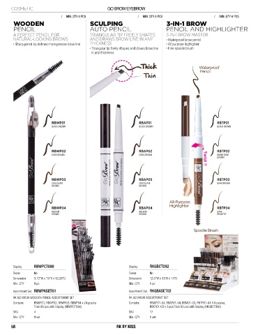 • Triangular tip freely shapes and draws brow line • Fine spoolie brush