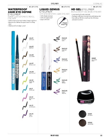 EYELINER • Easy to remove • Use with our HD Gel Liner Brush for effortless