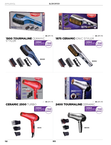 APPLIANCE BLOW DRYER / MIN. QTY 1 PC / MIN. QTY 1 PC 1900 TOURMALINE CERAMIC 1875 CERAMICIONIC STYLER STYLER BD02D BD02U / MIN. QTY 1 PC / MIN. QTY 1 PC CERAMIC 2500 TURBO 2400 TOURMALINE CERAMIC BD03 BD05N 150 RED