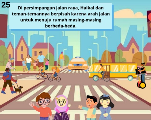 25 Di persimpangan jalan raya, Haikal dan teman-temannya berpisah karena arah jalan untuk menuju rumah masing-masing berbeda-beda.