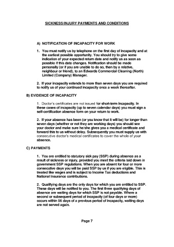 SICKNESS/INJURY PAYMENTS AND CONDITIONS