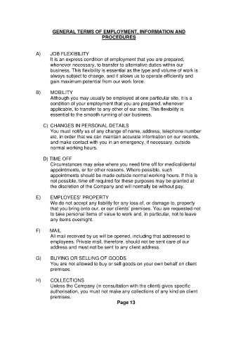 GENERAL TERMS OF EMPLOYMENT, INFORMATION AND