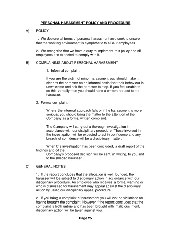 PERSONAL HARASSMENT POLICY AND PROCEDURE