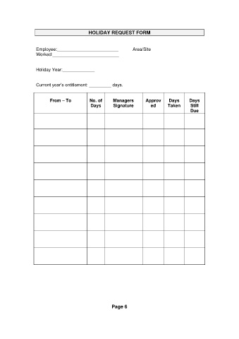 HOLIDAY REQUEST FORM