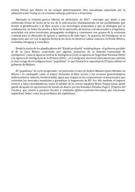 el claro riesgo de reconfiguraciones “populistas”, lo que limitaría la capacidad de EU para asfixiar al