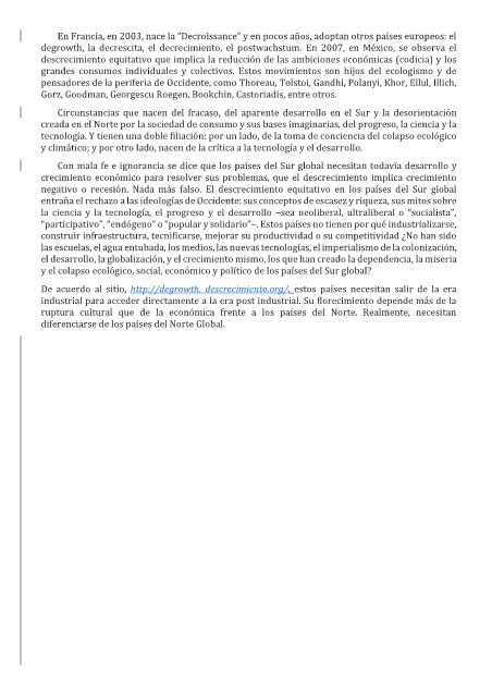 pensadores de la periferia de Occidente, como Thoreau, Tolstoi, Gandhi, Polanyi, Khor, Ellul, Illich,