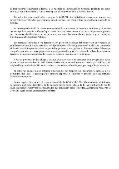 documenta una doble injusticia: la de quienes fueron torturados y la de los familiares de los 43