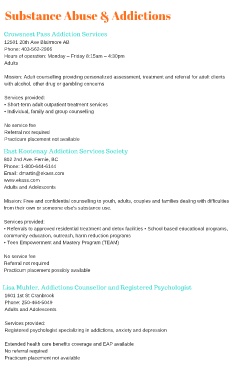 • Referrals to approved residential treatment and detox facilities • School based educational programs,