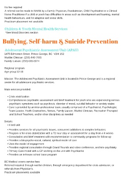 Mission: The Adolescent Psychiatric Assessment Unit is located in Prince George and is a regional