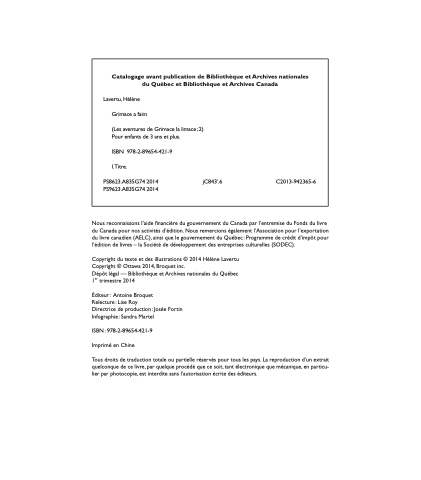 Copyright du texte et des illustrations © 2014 Hélène Lavertu Copyright © Ottawa 2014, Broquet inc.