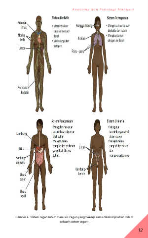 A n a t o m y d a n F i s i o l o g i M a n u s i a Gambar 4. Sistem organ tubuh manusia. Organ yang bekerja sama dikelompokkan dalam sebuah sistem orgam 12