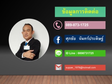 ข้อมูลการติดต่อ 089-873-1725 ศุภชัย จันทร์ประดิษฐ์ ID Line : 0898731725 supper_1978@hotmail.com