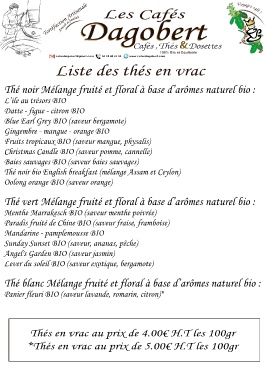 *Thés en vrac au prix de 5.00€ H.T les 100gr