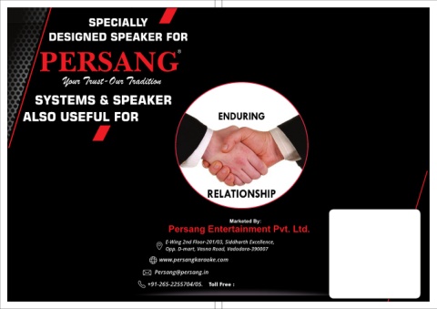 SPECIALLY DESIGNED SPEAKER FOR SYSTEMS & SPEAKER ALSO USEFUL FOR ENDURING RELATIONSHIP Marketed By: E-Wing 2nd Floor-201/03, Siddharth Excellence, Opp. D-mart, Vasna Road, Vadodara-390007 www.persangkaraoke.com Persang@persang.in +91-265-2255704/05.