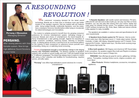 high-denition Sound Solutions Persang Entertainment brought a revolutionary change in the singing 3) Blue tooth speakers: 360 Degree omni directional HIFI Sound takes