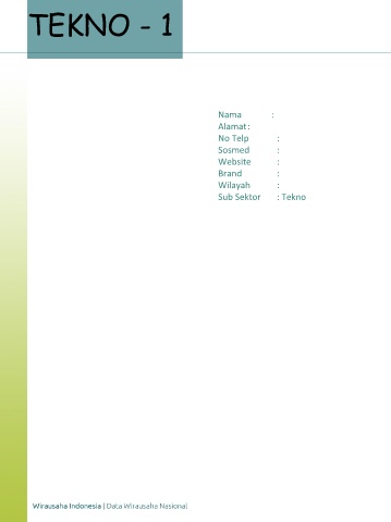 TEKNO - 1 Nama : Alamat: No Telp : Sosmed : Website : Brand : Wilayah : Sub Sektor : Tekno