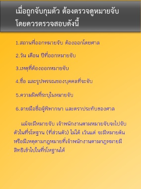 เมื่อถูกจับกุมตัว ต้องตรวจดูหมายจับ