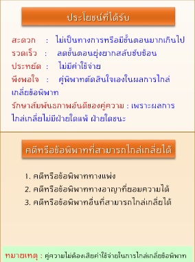 หมำยเหตุ : คู่ควำมไม่ต้องเสียค่ำใช้จ่ำยในกำรไกล่เกลี่ยข้อพิพำท