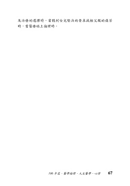 及治療的選擇時,當聽到女兒堅決的要求減輕父親的痛苦 時,當醫療碰上倫理時。 106 年度〃醫學倫理〃人文醫學〃弖得 67