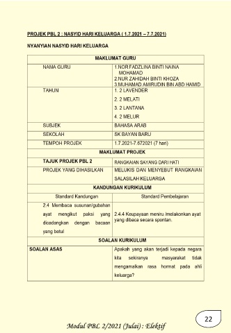 22 Modul PBL 2/2021 (Julai) : Elektif