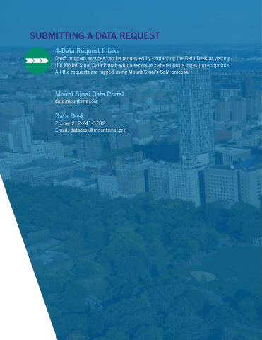 DaaS program services can be requested by contacting the Data Desk or visiting the Mount Sinai Data Portal, which serves as data requests ingestion endpoints. All the requests are tagged using Mount Sinai’s SoM process.