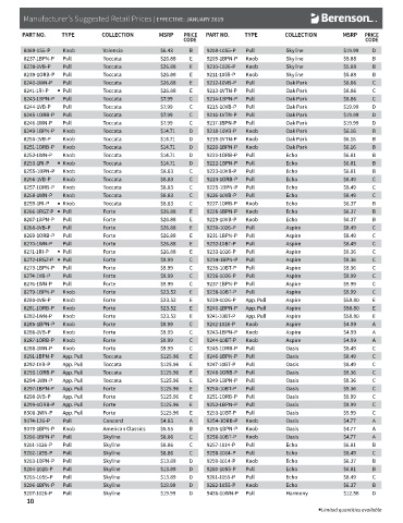 PART NO. TYPE COLLECTION MSRP PRICE PART NO. TYPE COLLECTION MSRP PRICE PART NO. TYPE COLLECTION MSRP PRICE PART NO. TYPE COLLECTION MSRP PRICE