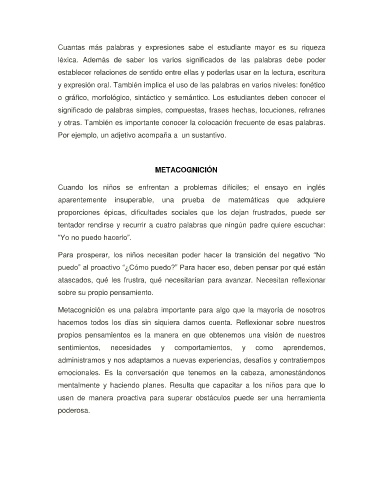 Cuantas más palabras y expresiones sabe el estudiante mayor es su riqueza