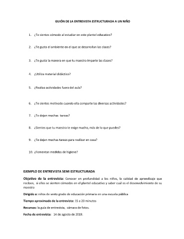 GUIÓN DE LA ENTREVISTA ESTRUCTURADA A UN NIÑO