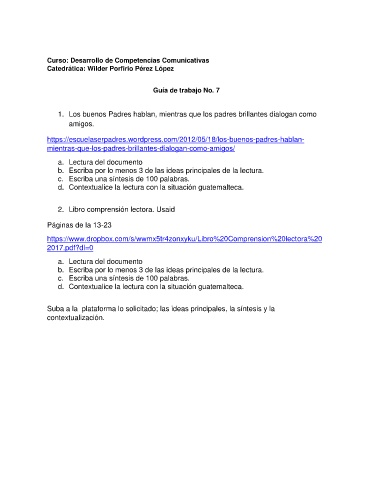 Suba a la plataforma lo solicitado; las ideas principales, la síntesis y la