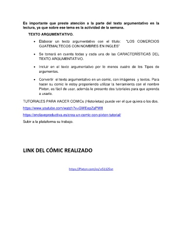 Convertir el texto argumentativo en un comic, con imágenes y textos. Para