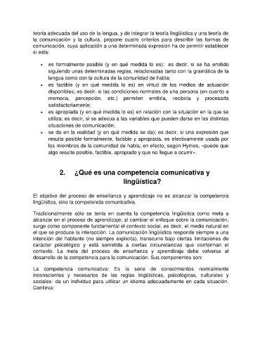lingüística, sino la competencia comunicativa.