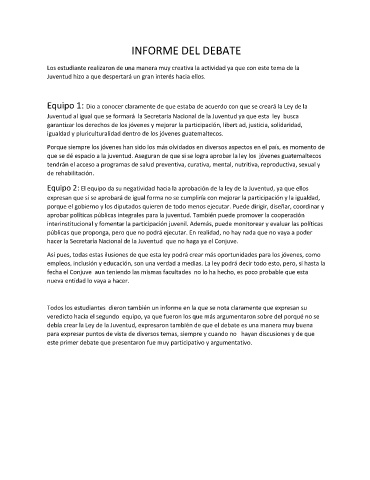 Equipo 2: El equipo da su negatividad hacia la aprobación de la ley de la Juventud, ya que ellos