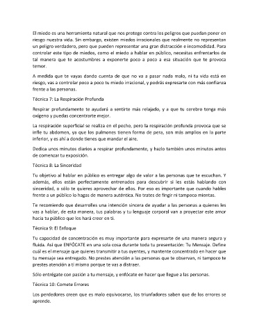 riesgo, vas a controlar poco a poco tu miedo irracional, y podrás expresarte con más confianza