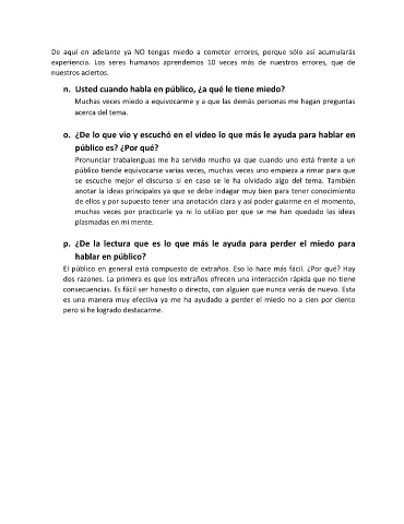 n. Usted cuando habla en público, ¿a qué le tiene miedo?
