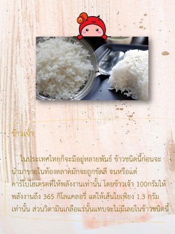 คาร์โบไฮเดรตที่ให้พลังงานเท่านั้น โดยข้าวเจ้า 100กรัมให้