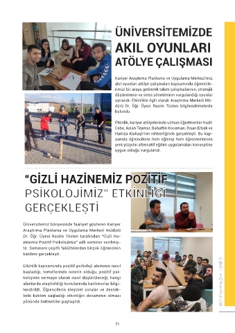 Müdürü Barış Kezer başta olmak üzere üniversitemiz Etkinlik, kariyer atölyelerinde uzman öğretmenler Kadri