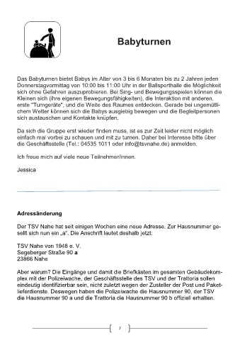 eindeutig identifizierbar sein, nicht zuletzt wegen der Zusteller der Post und Paket- Erwachsene Samstag 10:30 - 12:00 Uhr Sporthalle Nahe