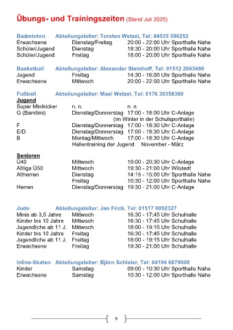 Übungs- und Trainingszeiten (Stand Juli 2025)