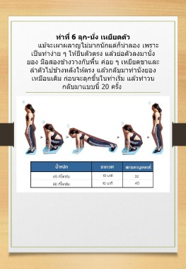 ล าตัวไปข ้างหลังให ้ตรง แล ้วกลับมาท่านั่งยอง