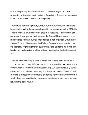 connection of the rising stock market to Quantitative Easing. Let me take a