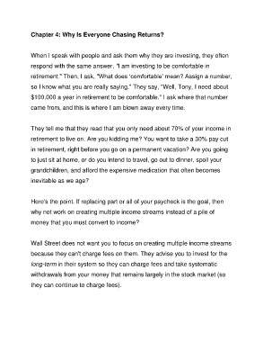$100,000 a year in retirement to be comfortable." I ask where that number