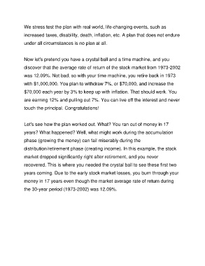 increased taxes, disability, death, inflation, etc. A plan that does not endure