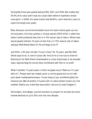 even point. In 2008, the stock market lost 36.63%, and it took four years to