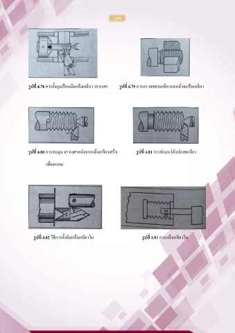 รูปที่ 4.80 การลบมุม 45 องศาหลังจากกลึงเกลียวเสร็จ รูปที่ 4.81 การทํามนโค้งปลายเกลียว
