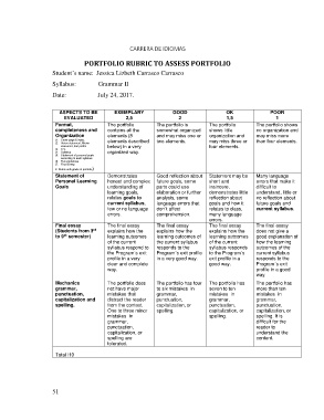 PORTFOLIO RUBRIC TO ASSESS PORTFOLIO