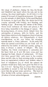 barking of joy. Even man, the master of the whole, whose mind embraces all times and places, is r om being insensible to the chan e of season. His far-seeing reason, of course, draws delight om the anticipation of autumn, with its uits; and his benevolence rejoices in the happiness observed among all in rior creatures ; but independently of these considerations, on his own ame the returning warmth e erts a direct in uence. In his early li , when the natural sensibilities are yet esh and un altered by the habits of arti cial society, spring, to man, is always a season of delight. The eyes brighten, the whole countenance is animated, and the heart feels as if new life were come, and has longings r esh objects of endearment. Of those who have passed their early years in the country, there are few, who, in their morning walks in spring, have not experienced, without very de nite cause, a kind of tumultuous joy, of which the natural ex pression would have been, how good the God of na ture is to us ! Spring, thus, is a time when sleeping